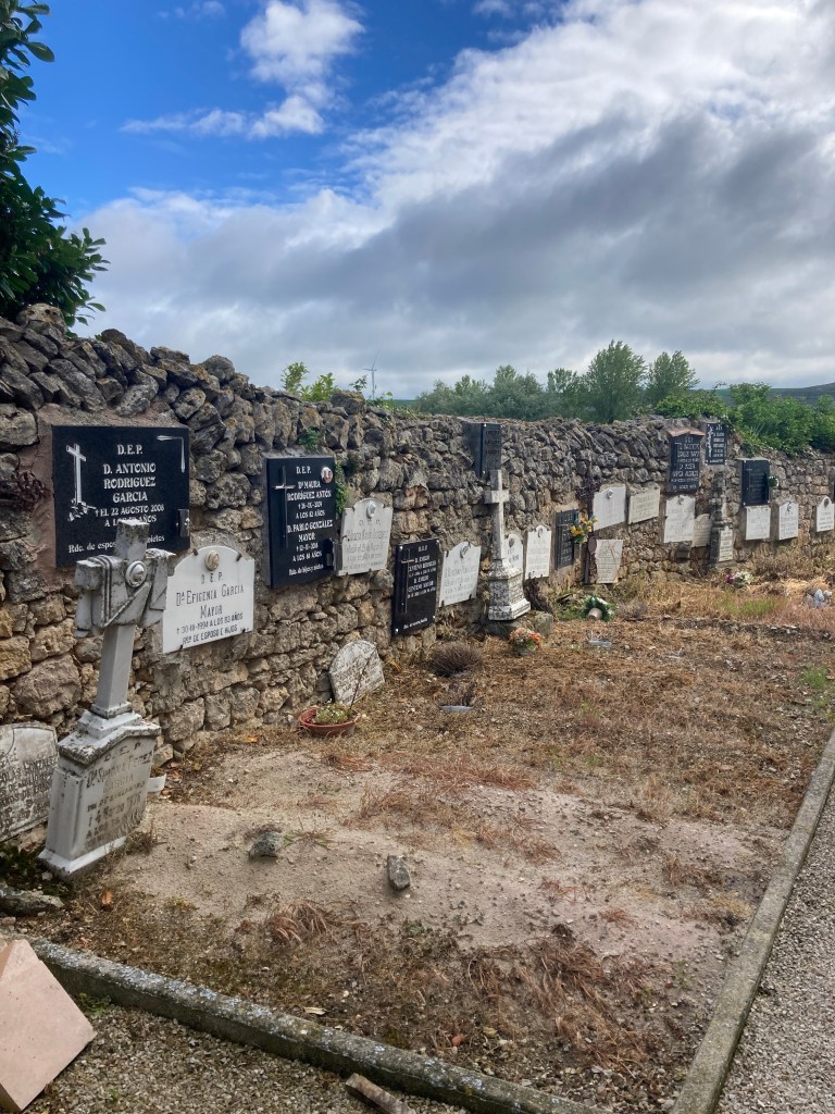 And there are cemeteries that I sometimes pass. And then last but certainly not least, there are occasionally markers along the way where a former pilgrim on the Camino “checked out” before getting the Compostela at the end.